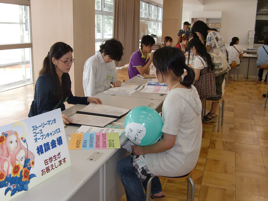 | 年に数回、京都精華大学にてオープンキャンパスが開催されます。 オープンキャンパスでは、学生が今まで大学で描いてきた課題の作品展示や、実際にどのような方法でマンガを描いてるかを実演いたします。 また、個別相談会場では講師や在学生が直接指導・アドバイスをいたします。 夏のオープンキャンパスでは講師によるワークショップもございます。 普段大学でどのような授業を受けているのかを実際に触れることができる貴重な機会ですので、是非ご参加ください。 ※オープンキャンパスの日程につきましては京都精華大学のHPにて随時案内しております。 |